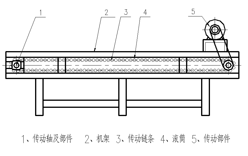 该机由机架、滚筒(不锈钢管φ51×1.5两头用工程塑料密封)、废果输送装置、电机、传动系统、拉紧装置等组成。